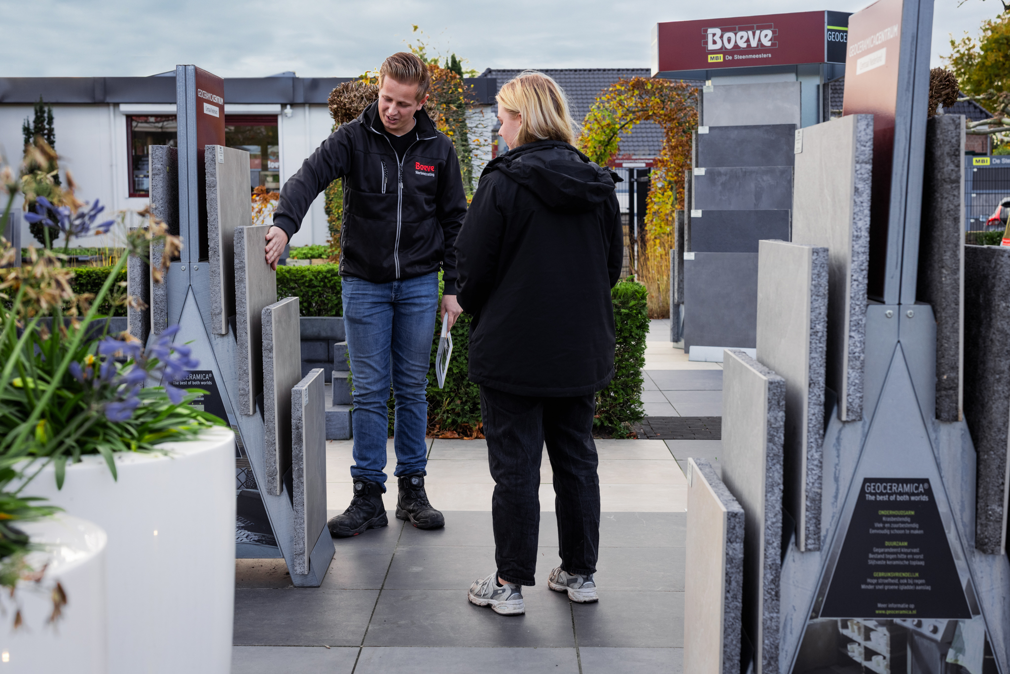 Op onze locatie in Oldebroek vind je een ruime showtuin van 3.500 m² waar ons assortiment overzichtelijk is gepresenteerd. Hier bekijk je onder andere keramische tegels, gebakken klinkers, betonproducten, afwateringssystemen, gootjes en accessoires. Alles ligt naast elkaar, zodat je materialen goed kunt vergelijken.